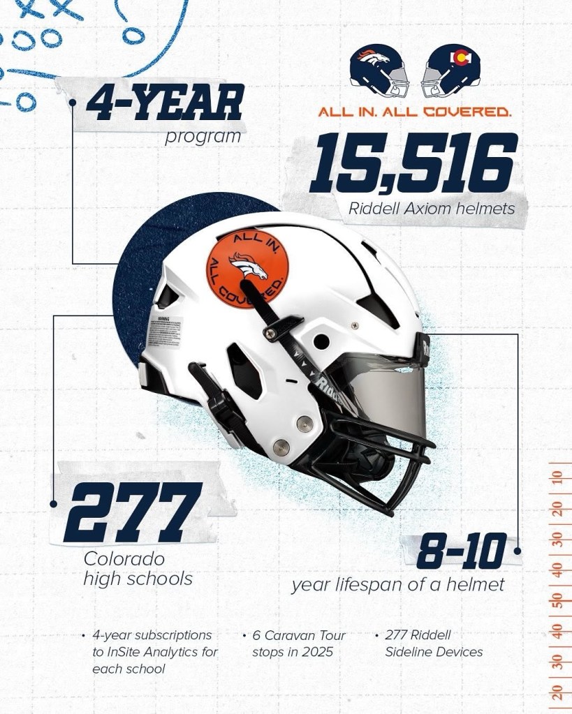Denver, CO – The Denver Broncos Foundation is taking a monumental step toward improving youth sports in Colorado with the launch of All In. All Covered., an innovative program designed to create lasting change for student-athletes across the state. This first-of-its-kind initiative reflects the foundation’s core values of equity and innovation, focusing on how schools and governing bodies prioritize student-athlete health and safety.