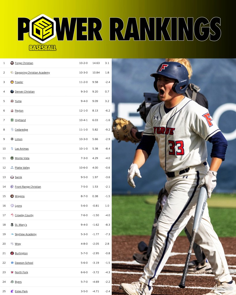 - Forge Christian (2A): Three wins this week against Dayspring Christian, Denver Christian, and PRA by a combined score of 33-5 earns them the #1 ranking in 2A.