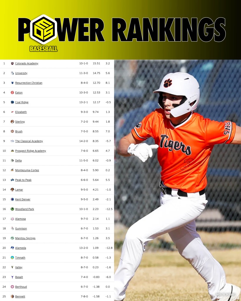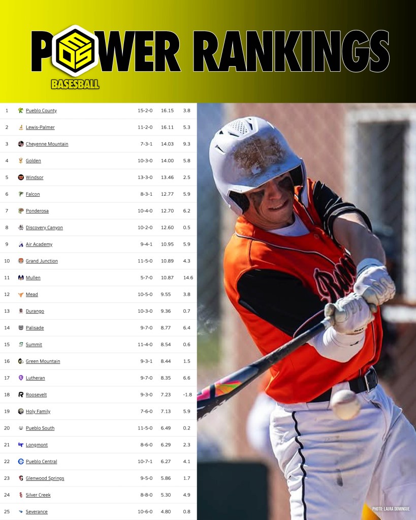 DENVER — As the spring season heats up, so does the competition across Colorado high school baseball. The latest rankings saw major movement after several statement wins, rivalry matchups, and upsets from April 14–19. Grandview takes over the No. 1 spot in 5A, Mountain Vista is streaking, and Lewis-Palmer made its presence known in 4A with back-to-back 16 run wins.