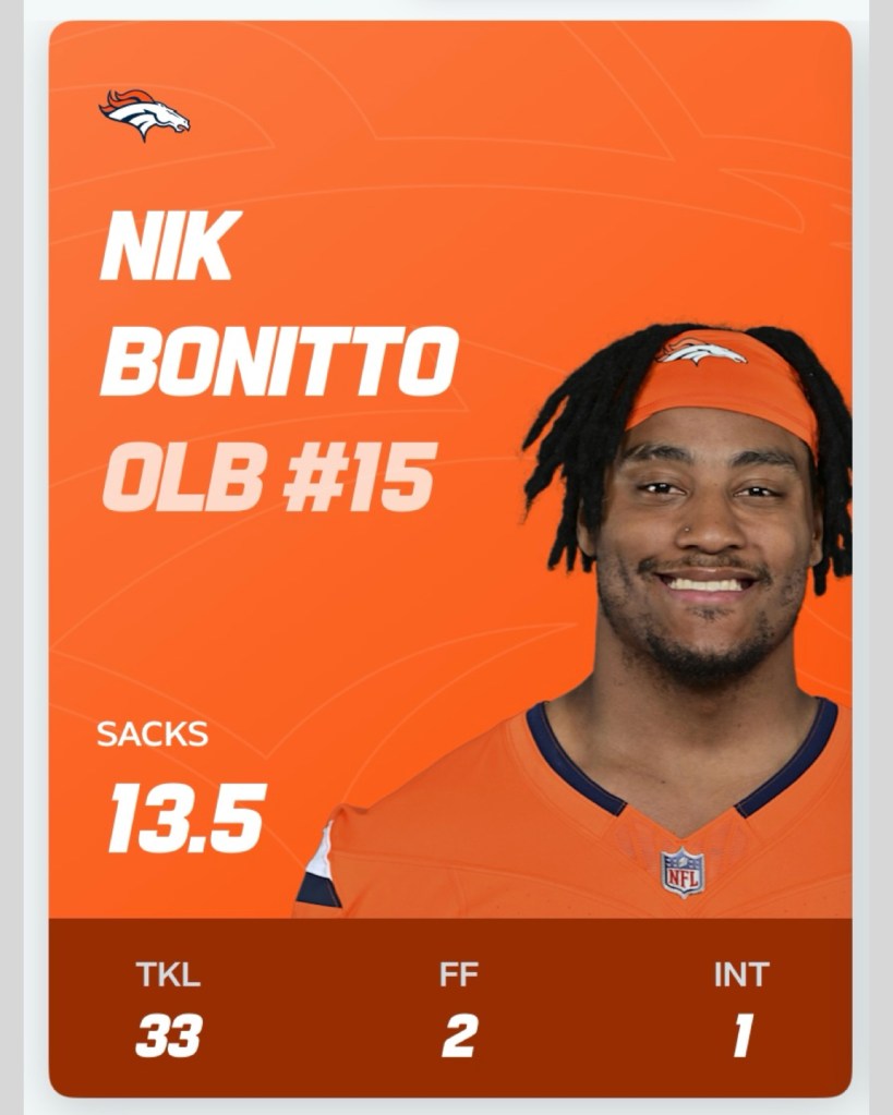 The defensive unit, on the other hand, wasn’t just efficient — it was dominant in key categories. Denver led the NFL in sacks with 63, a mark that reflected the breakout campaign of edge rusher Nik Bonitto. Bonitto finished with 13.5 sacks, 33 tackles for loss, two forced fumbles, and even an interception.
