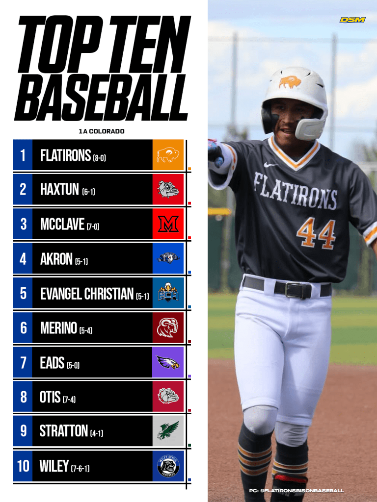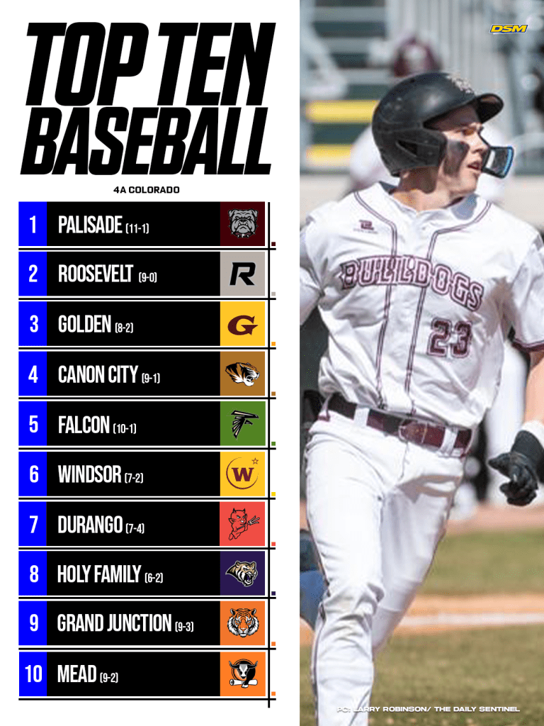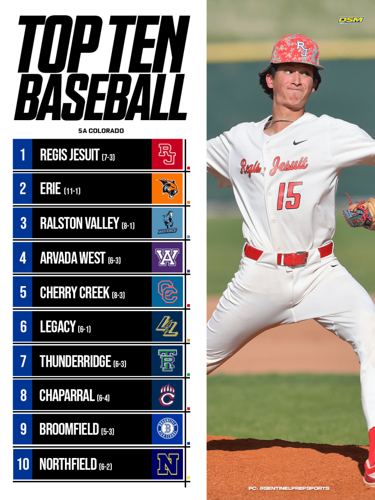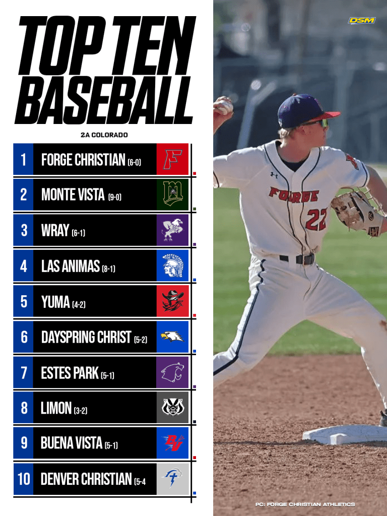 Denver Sports Media’s latest Colorado high school baseball rankings break down the Top 10 teams across Classes 1A through 5A as league play intensifies and contenders begin to separate.