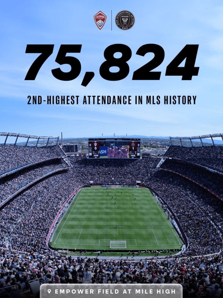Then there was the biggest stage of the weekend. The Rapids lost 3-2 to Inter Miami, but the result was only part of the story. Colorado hosted Messi and Miami in front of 75,824 fans at Empower Field at Mile High, the second-highest single-game attendance in MLS history. Even in defeat, that match felt major because the atmosphere, the scale, and the moment were undeniable. Rafael Navarro and Darren Yapi scored for Colorado, and the event itself showed what a big-stage soccer moment can look like in this market.